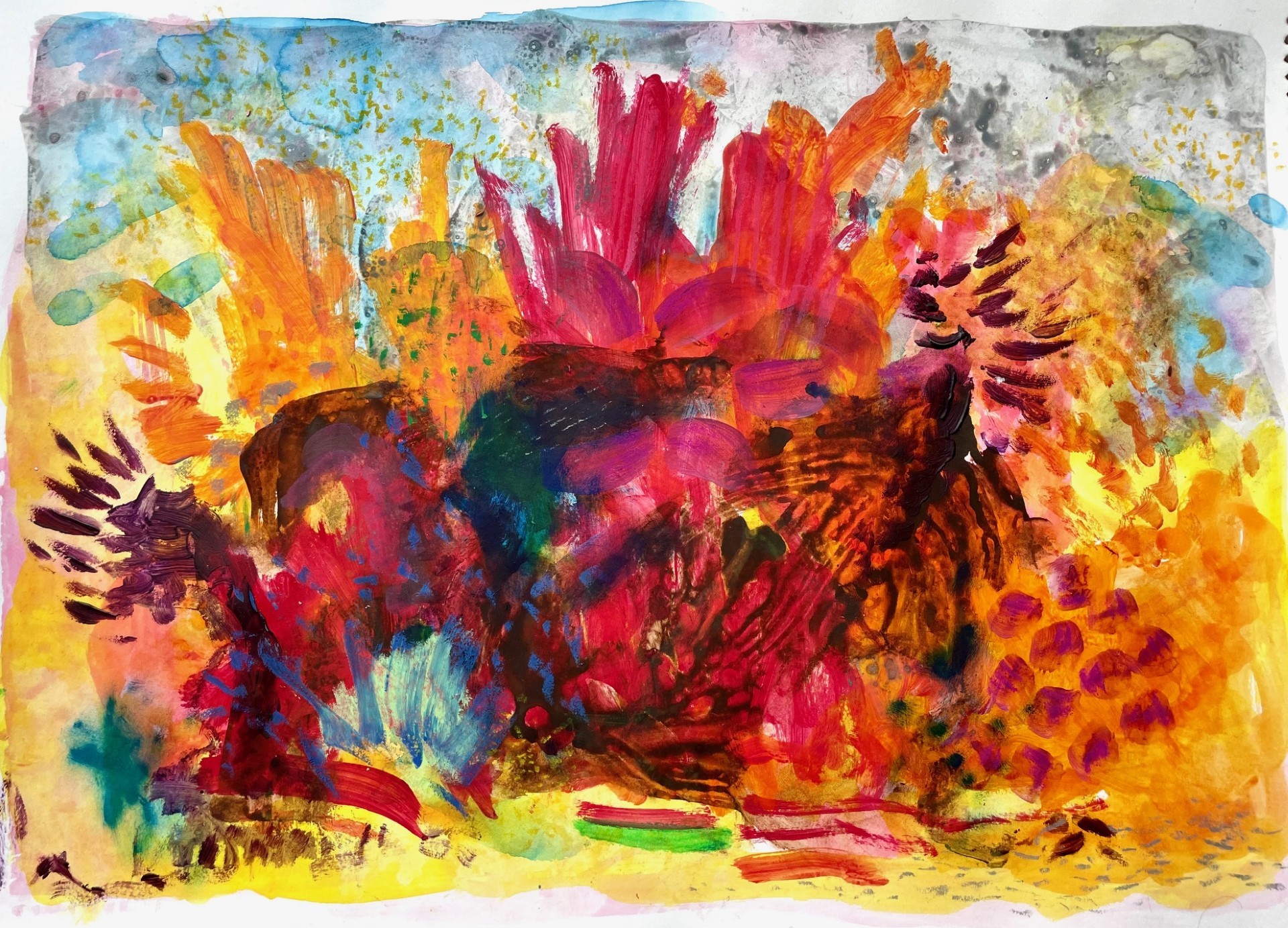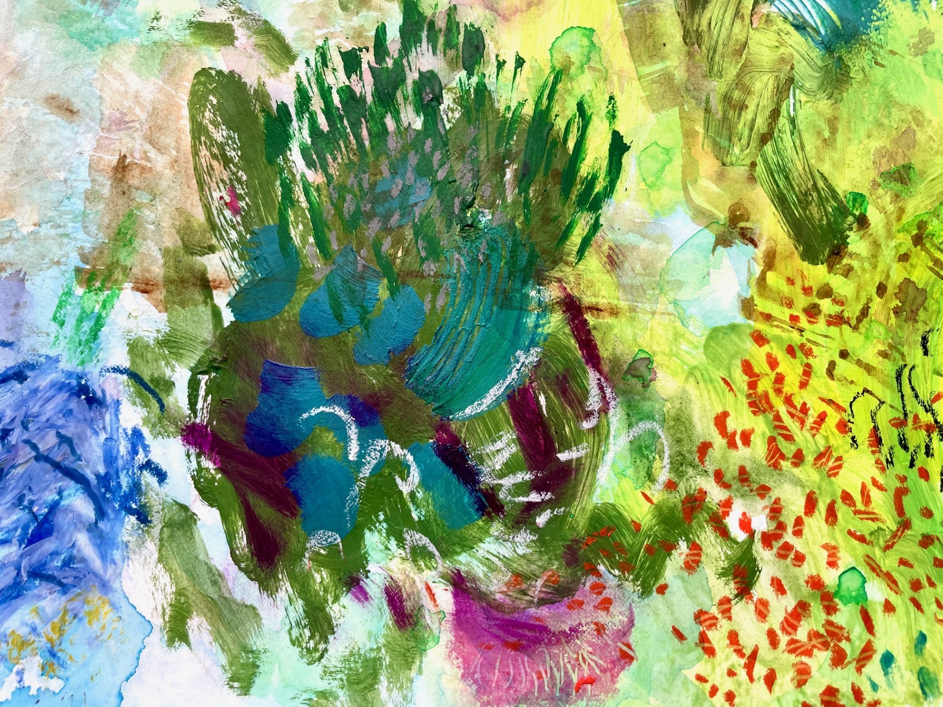 Charged Surface from Jenny Catherall (nee` Drinkwater) brings together abstract landscape paintings, a central collage painting, and ceramic vessels. The work explores surface as something active - on both paper and clay, layers are built, scraped or carved back, reworked and allowed to settle. The process is intuitive and responsive, guided by gesture, texture and colour, rather than fixed outcomes.