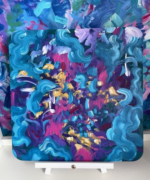 Charged Surface from Jenny Catherall (nee` Drinkwater) brings together abstract landscape paintings, a central collage painting, and ceramic vessels. The work explores surface as something active - on both paper and clay, layers are built, scraped or carved back, reworked and allowed to settle. The process is intuitive and responsive, guided by gesture, texture and colour, rather than fixed outcomes.