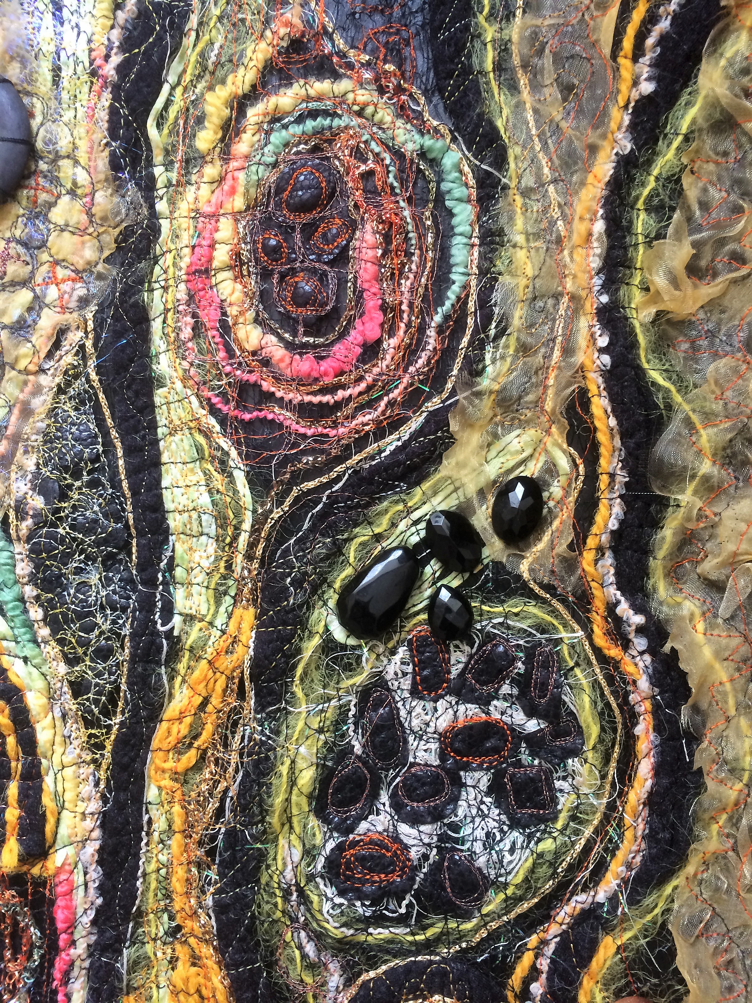 The different manifestations of Natural Forms represented here lend themselves to richly diverse textile techniques and methods, including designing and dyeing cloth [some using plants themselves], stitch, embroidery, beading, quilting and felting.