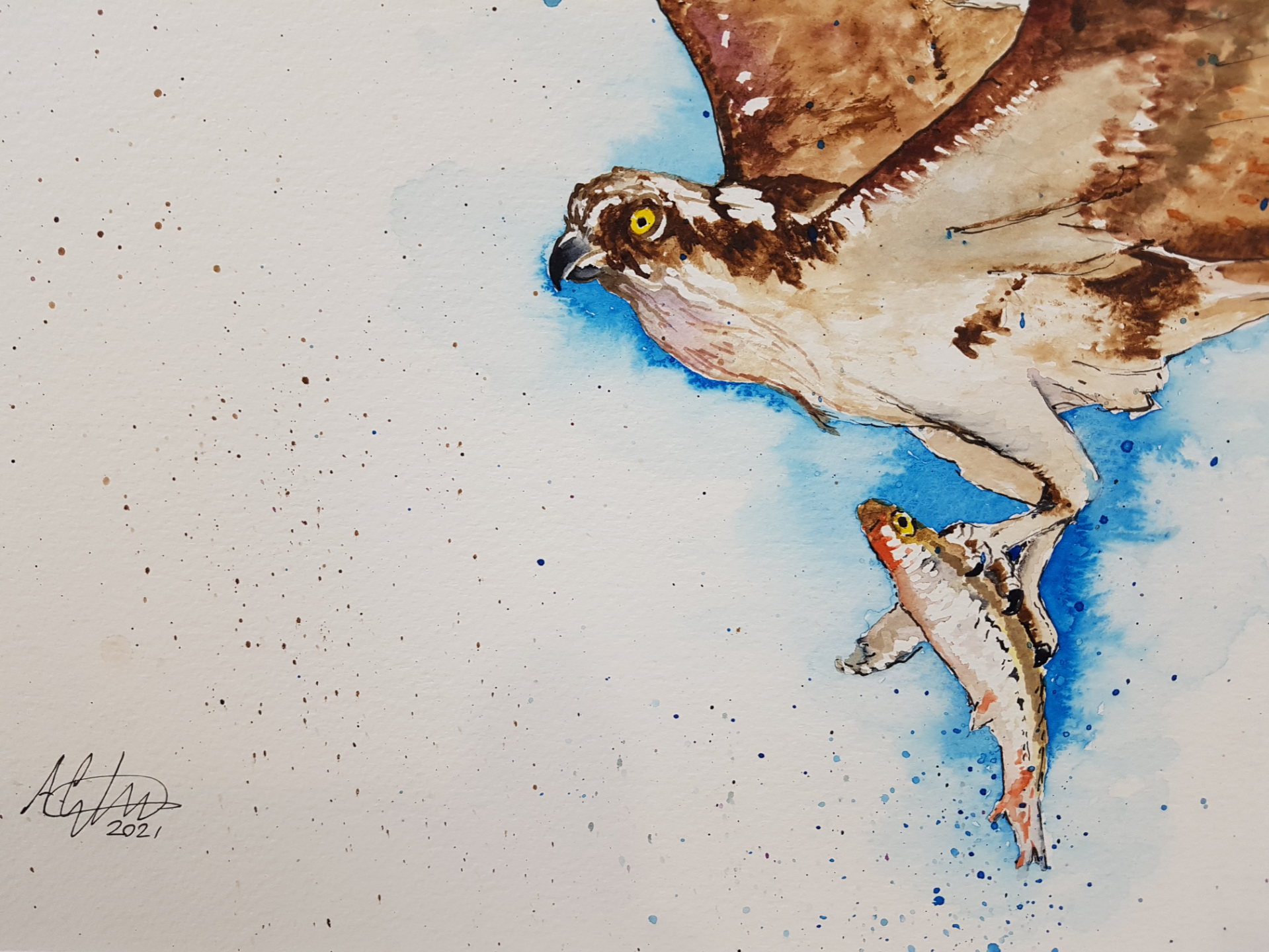 As the paint flows on the page and finds its own path the resulting uncontrolled outcome adds to the natural movement and vitality of the images, allowing the water to control the outcome of these images of animals that all live and depend on water to thrive.