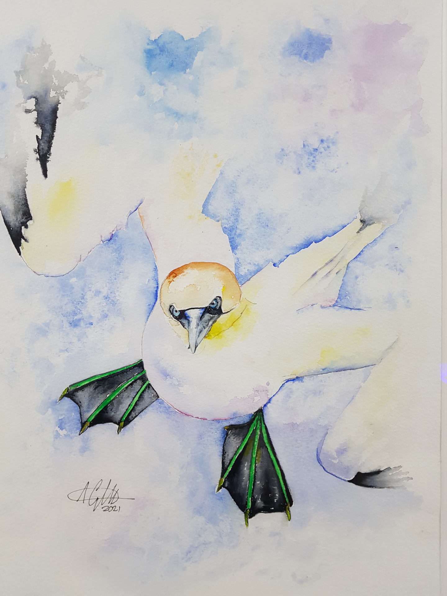 My first time using watercolours I have enjoyed allowing the medium to lead my images to the final results.