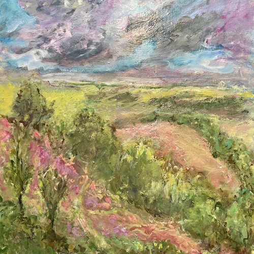 Paintings exploring light form a frieze of near and distant landscapes, with smaller pieces also inspired by sunshine and storms, the shadows of dawn and dusk and the illuminatory properties of light.