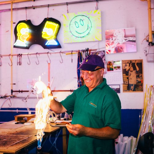 With a passion for neon and 35 years of expertise, Tony transforms traditional neon glass bending into stunning, contemporary art pieces. His works have gained critical acclaim in both corporate and domestic settings.