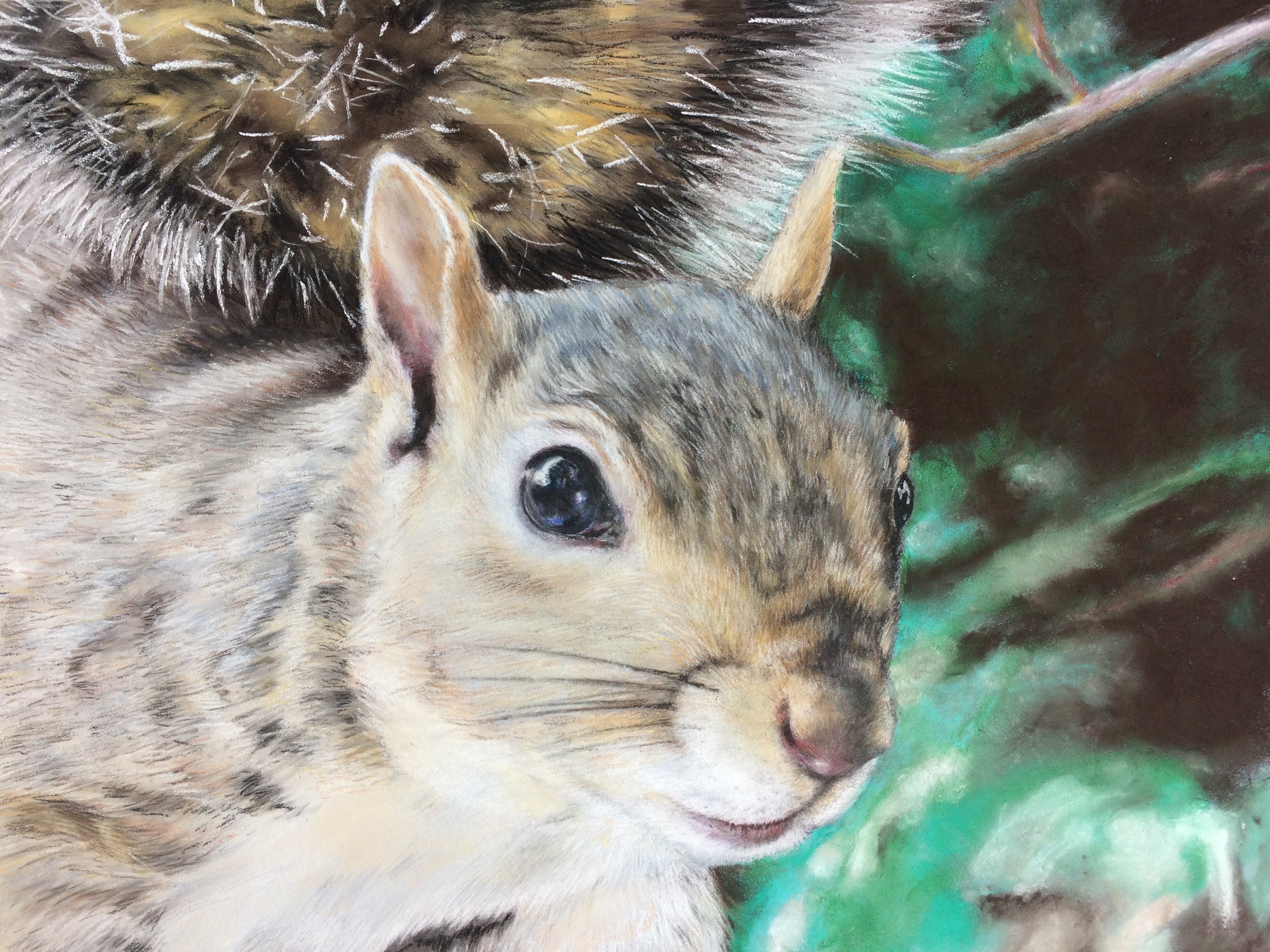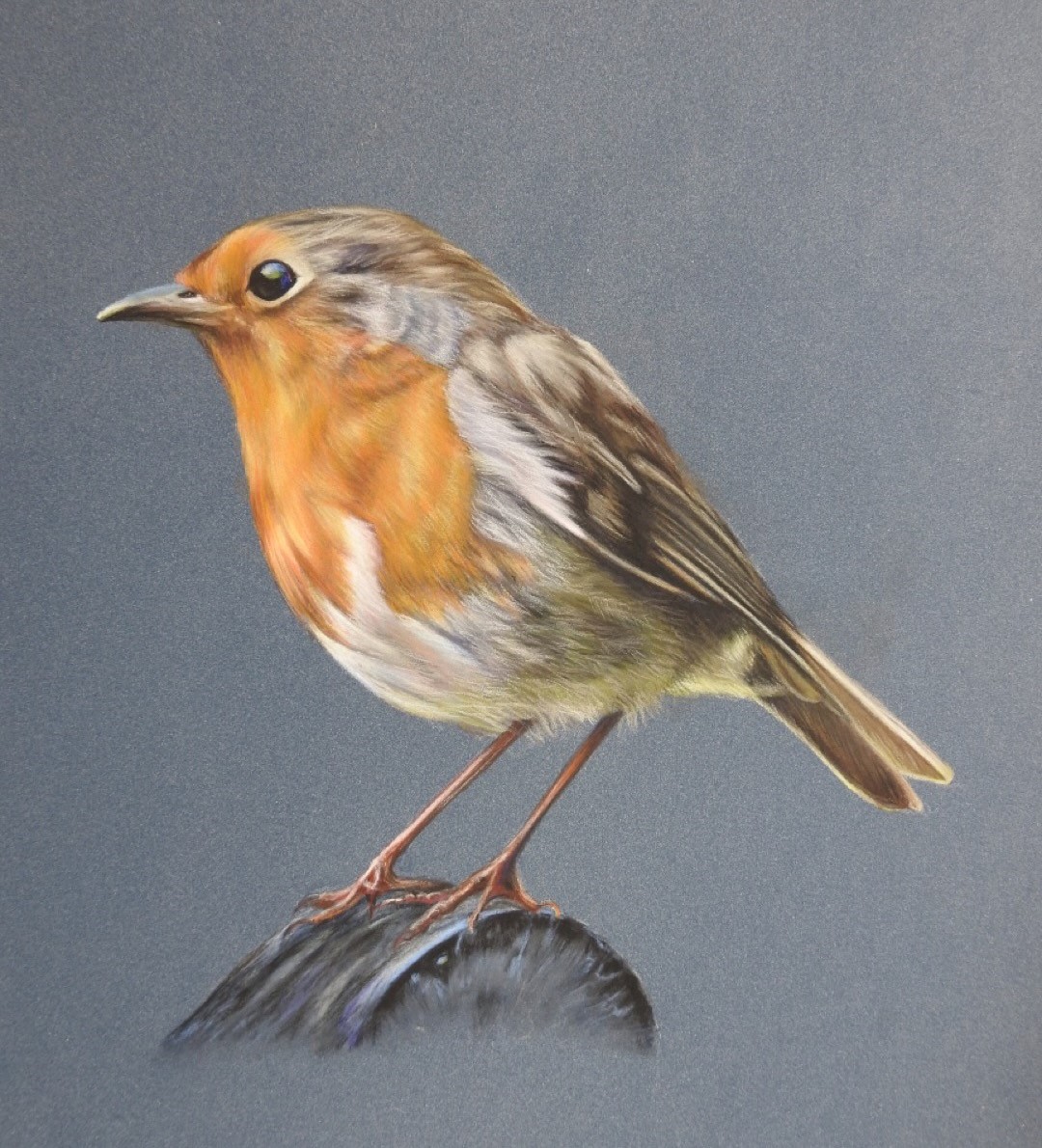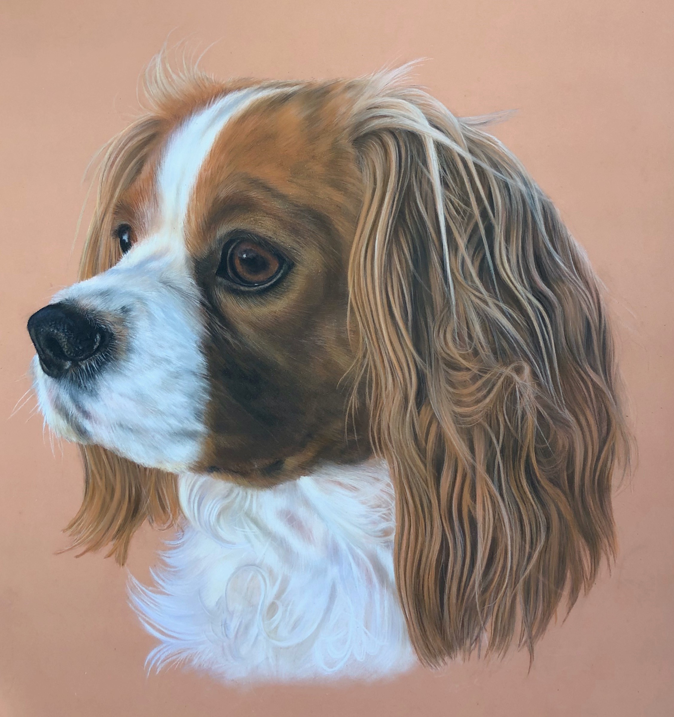 The challenge of the process comes from setting out the main features at the outset, to the use of hues and tones with the soft smooth bendable pastel in various forms, bringing them to life. My intention is to make a fairly accurate portrait but with greater depth, life, personality and richness of colour than can be achieved with a photograph.