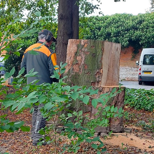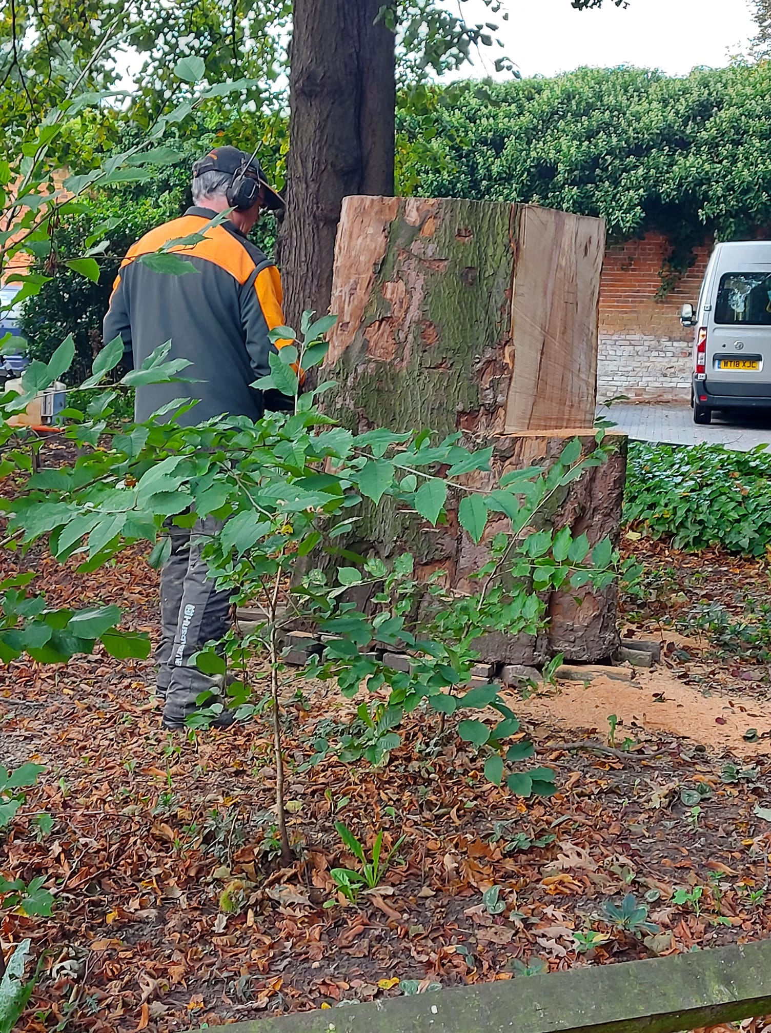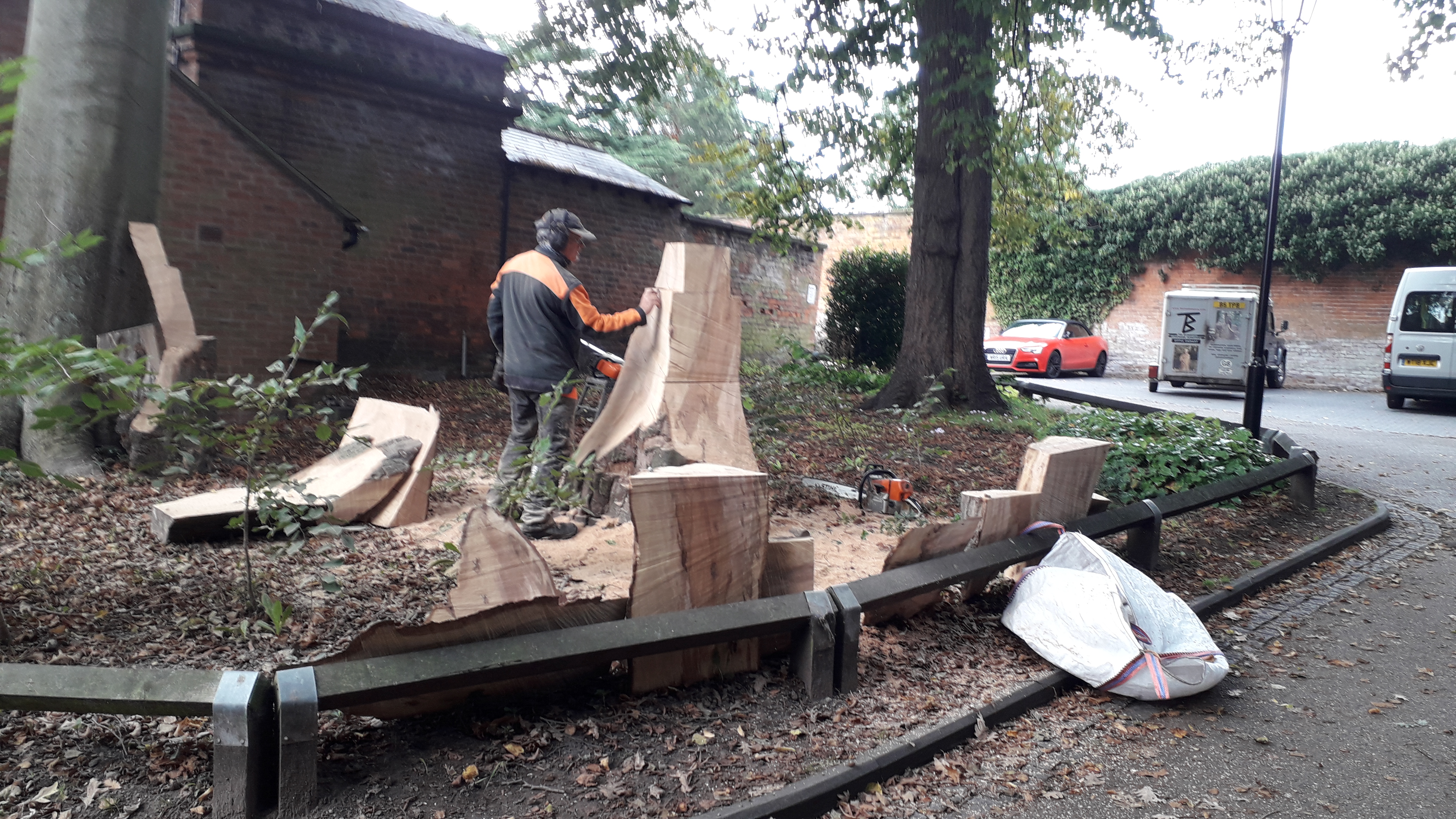 The first task was to clear an area where the sculptor, Tim Burgess, could work on the length of trunk CWAC had given us. Tim completed the work on October 11th and 12th.