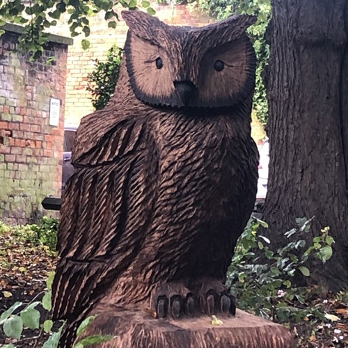 Happily, the Arts Centre had just received a legacy from an old supporter and so, if we could find an artist, we could cover the costs of the work. The Arts Centre has an extensive network in the Arts world, and we were able to locate a noted chainsaw sculptor, Tim Burgess, who agreed to undertake the task. His suggestion of an Owl met with universal approval.