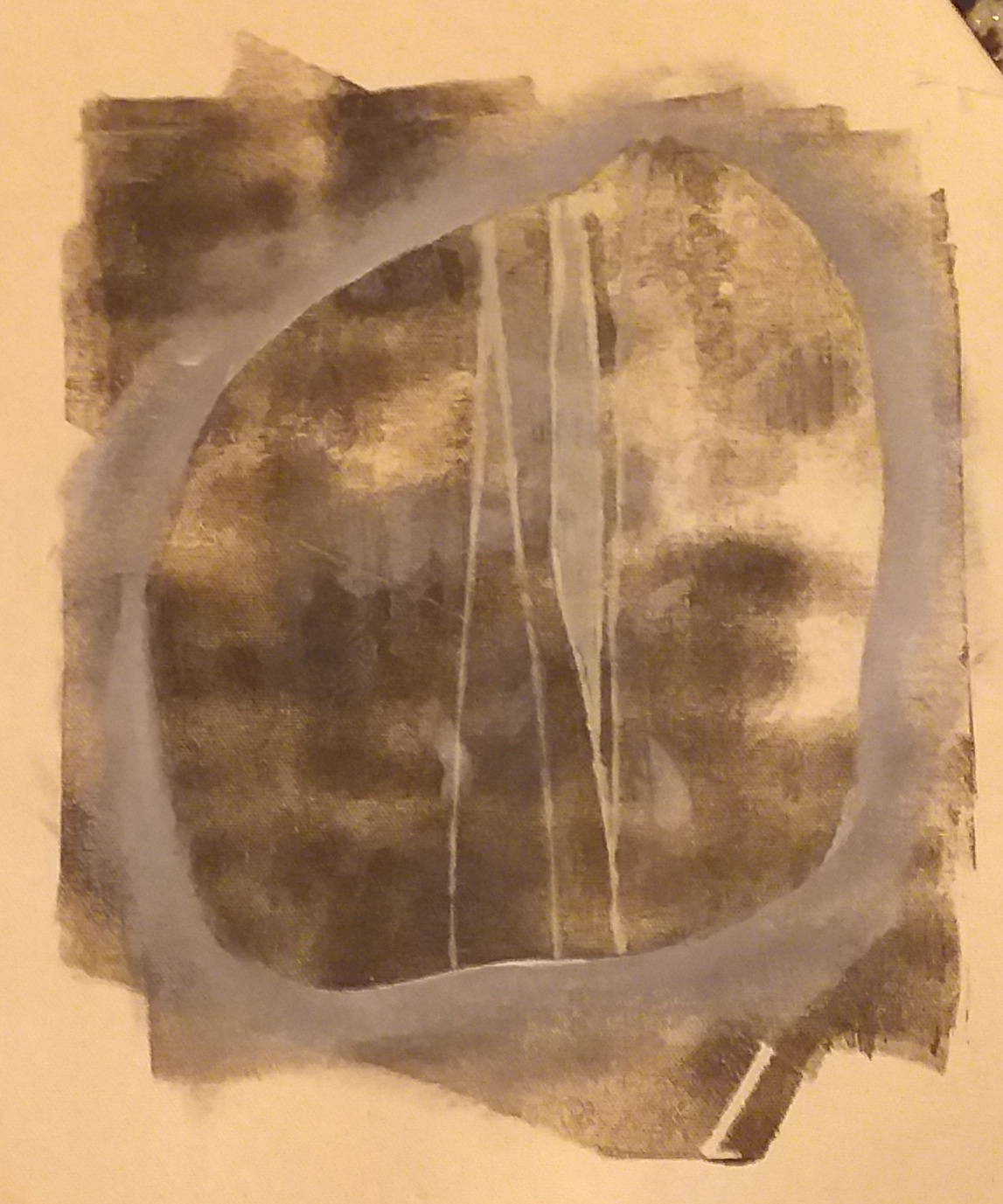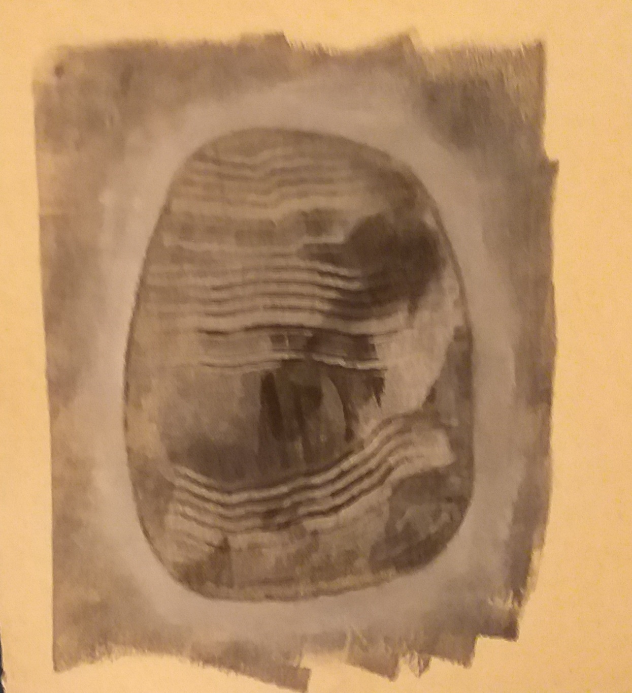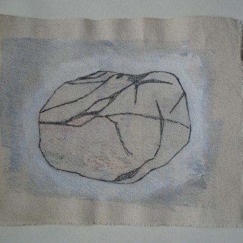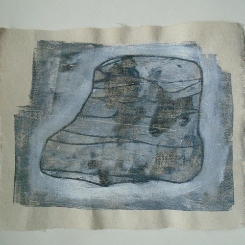 I turned to printmaking to reflect some of the interesting formations I had witnessed. I decided to approach this work in a particular way using unprimed canvas and a variety of printing techniques, the aim was to produce some free hanging canvases that would capture some of the texture of the rocks but also by their unfinished appearance some of the rustic wild quality of the island. Not refined and polished, but primitive and wild to give a true sense of place.