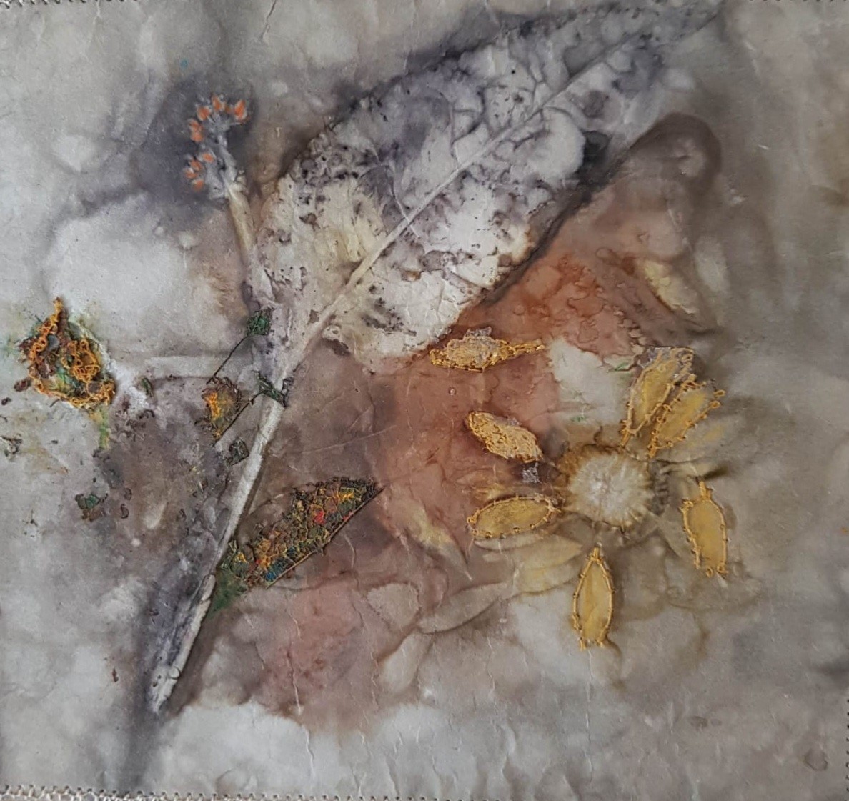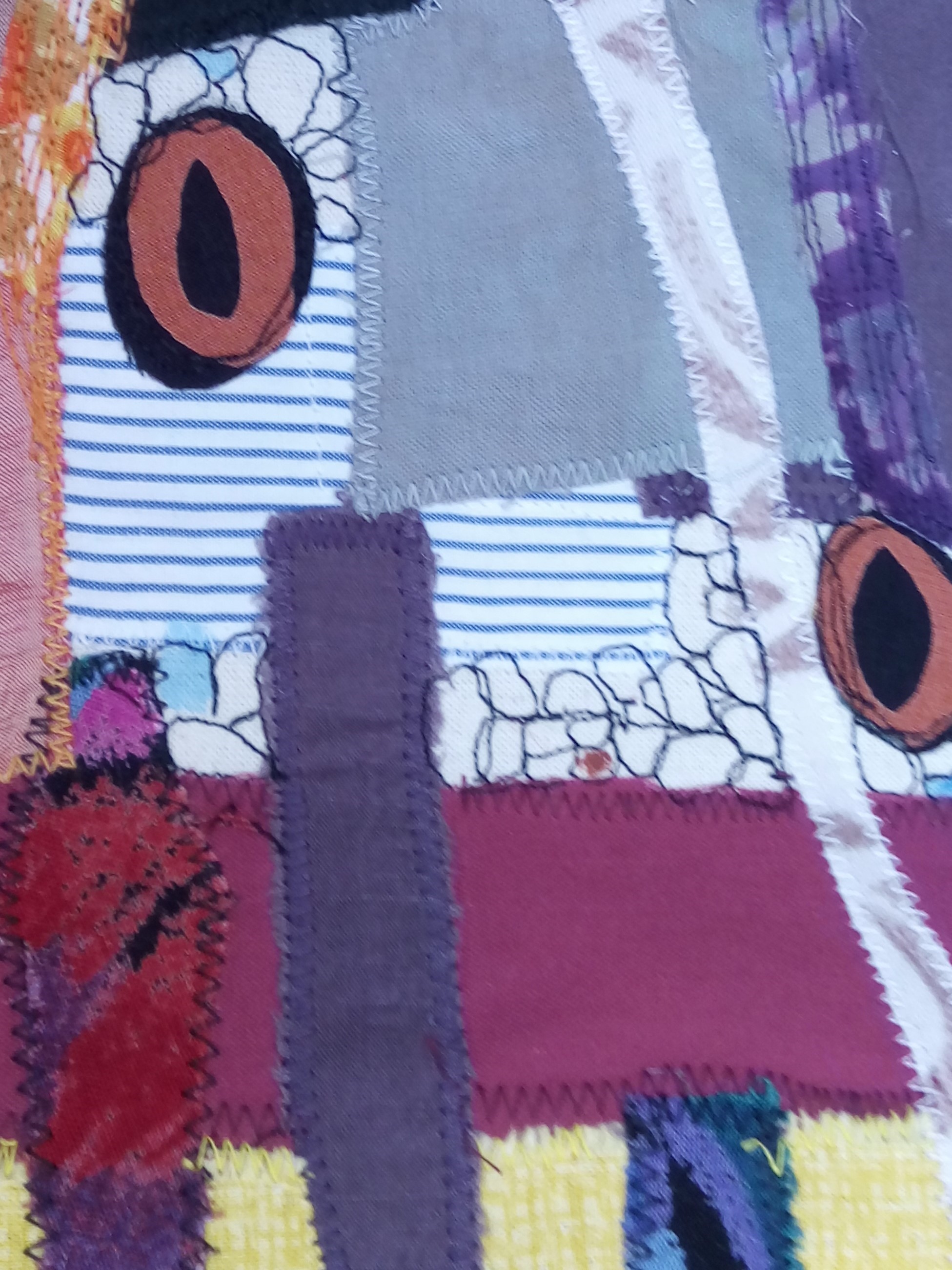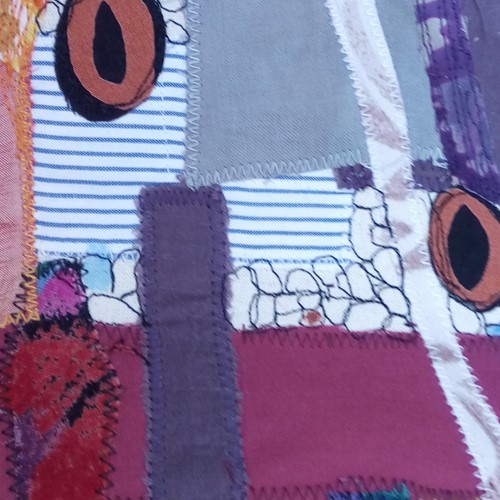 This exhibition is by Re-View Textile, a group of local textile artists who exhibit in the North West: Rachel James, Janet Wilkinson, Judith Railton, Sue Boardman, Viv Netherwood, Julie James Turner, Helen Cooper, Mary Bryning and Alison Bailey Smith.